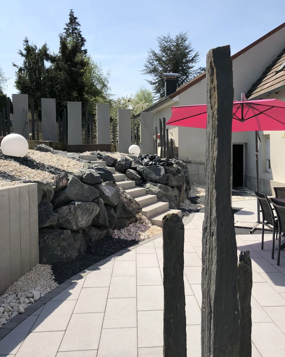 Partagez avec nous vos idées de terrasse, pavage ou création d'espaces verts. Notre équipe vous accueille avec attention et savoir-faire pour métamorphoser votre extérieur en un lieu convivial où chaque moment devient précieux.