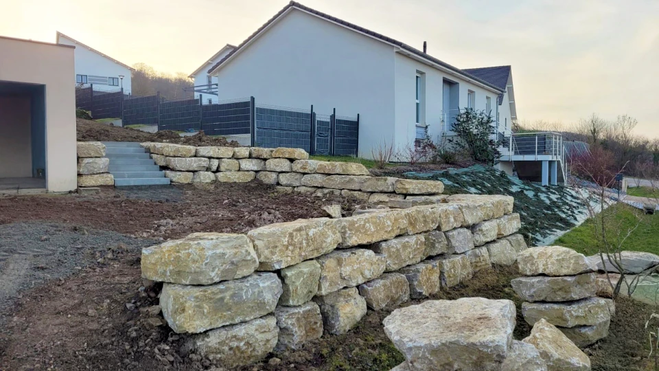Un mur de soutènement transforme votre terrain pentu en zones de vie plates et accueillantes. Cette installation offre une solution efficace contre l'érosion et les glissements de terrain lorsqu'elle bénéficie d'un drainage approprié. Vous pouvez ainsi aménager des plateformes idéales pour vos terrasses et coins jardin. Les sols très instables nécessitent parfois des solutions géotechniques complémentaires que nous saurons vous recommander. Notre catalogue propose plusieurs options esthétiques, de la pierre naturelle aux gabions ou au béton, chacune apportant un caractère unique à votre environnement extérieur.